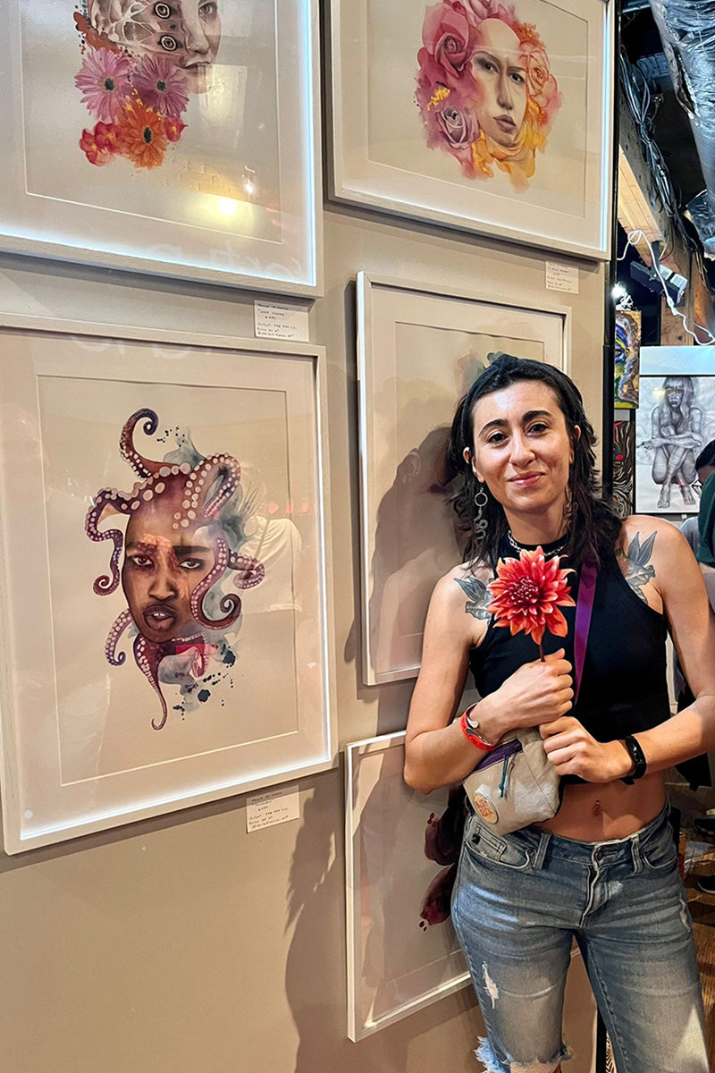 The natural beauty of Vancouver inspired Paula to reconnect with her artistic roots. Between 2015 and 2019, she embarked on a self-designed art education, experimenting with various media and subjects and participating in local art shows. Toward the end of this period, Paula discovered watercolor as the perfect medium to express her ideas with complete freedom. In 2020, she returned to portrait drawing, this time using watercolor to create emotionally charged, surrealist-style faces. This marked the development of her signature style, influenced by contemporary watercolor artists.